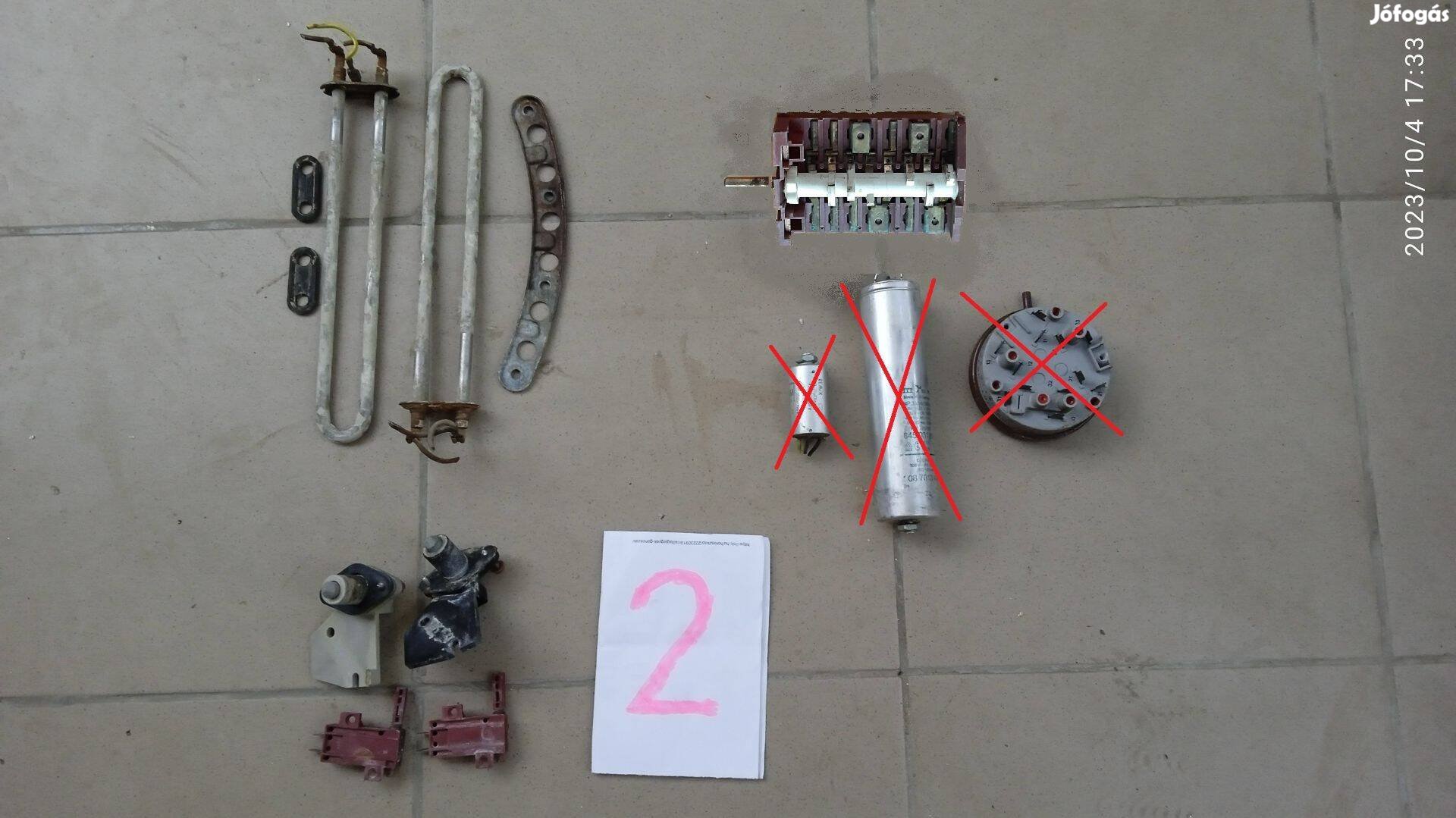 szűrőház 2e szűrő 1.5e gumielvezető cső 2e mosószer tartó 1.2e fedélkeret tömítése 1.5e fűtőtest tömítéssel 2,5e fűtőtest rögzítő 1e láb 1,3e dob műa. borda 1,5e/db