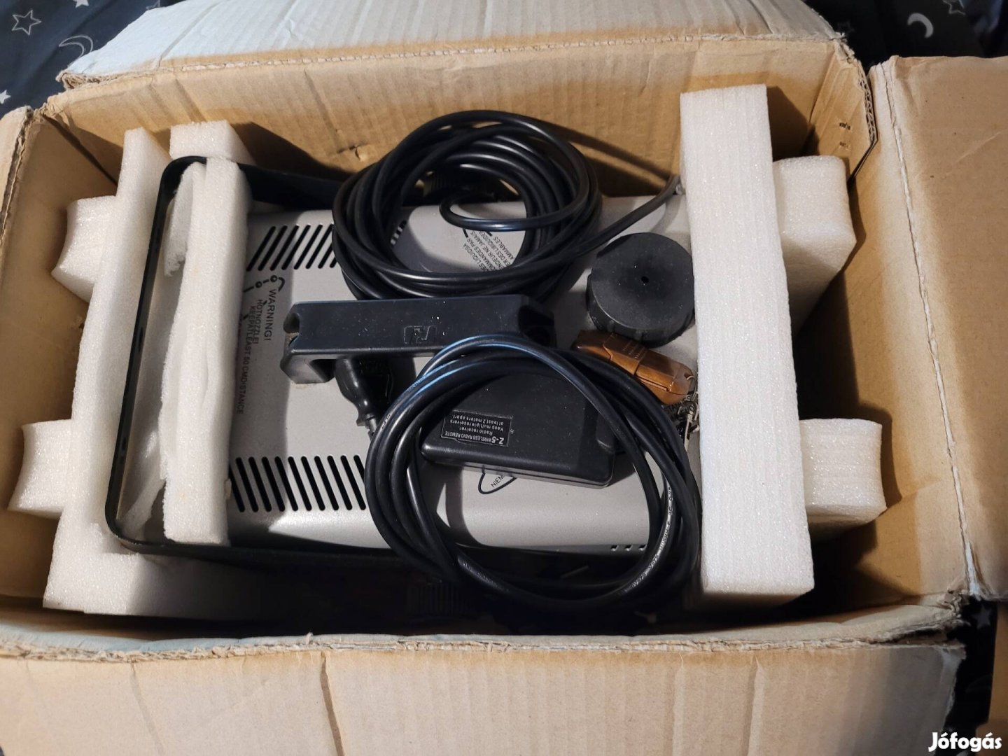 Eladó a címben említett használt füstgép kábeles és távirányítós vezérlővel.