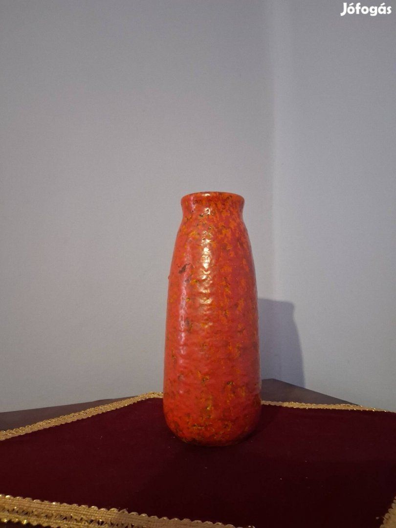 Narancssárga, láva mintás iparművészeti váza, 26cm magas