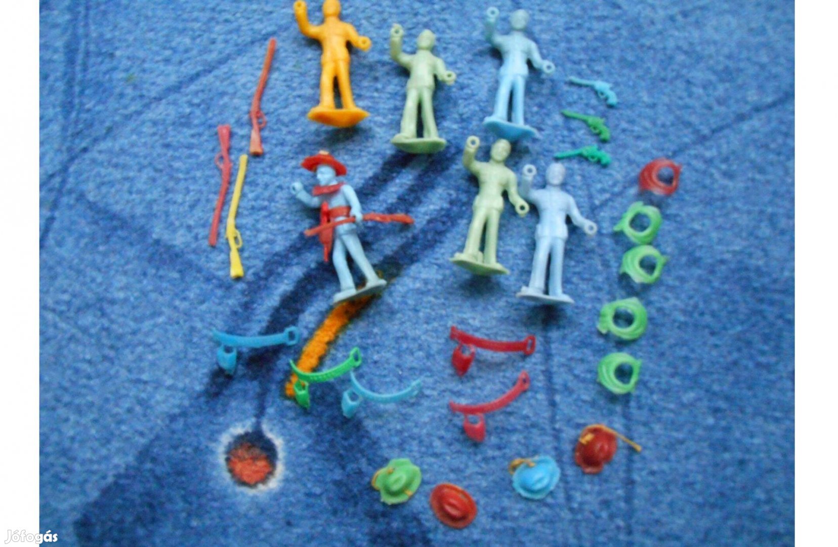 Eladók a képeken látható műanyag játékcowboyok.Öltöztethetőek,puskával,övtáskával,pisztollyal,kalappal,nyaksállal.