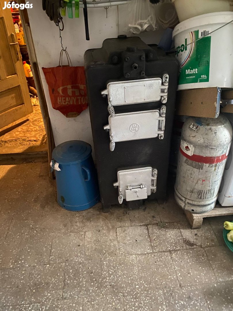 Kcsm vinyiszto öntöttvas kazán - kb 250 kg, felújított állapotban, nyomáspróbázva, vízbekötővel és kémény bekötőcsonkkal, az ár alkuképes
