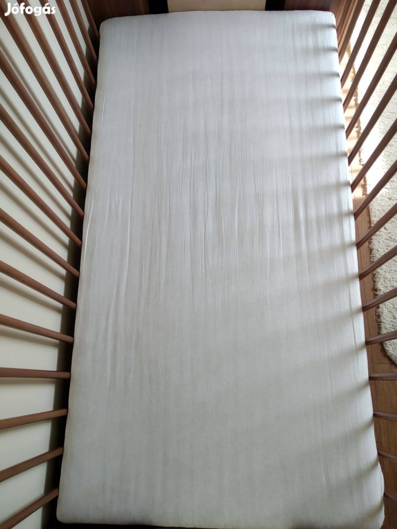Védőhuzat van rajta, ami cipzárral záródik, és mosható. Folyamatosan csak gumilepedővel használtuk, nem ázott el, nincs hibája.