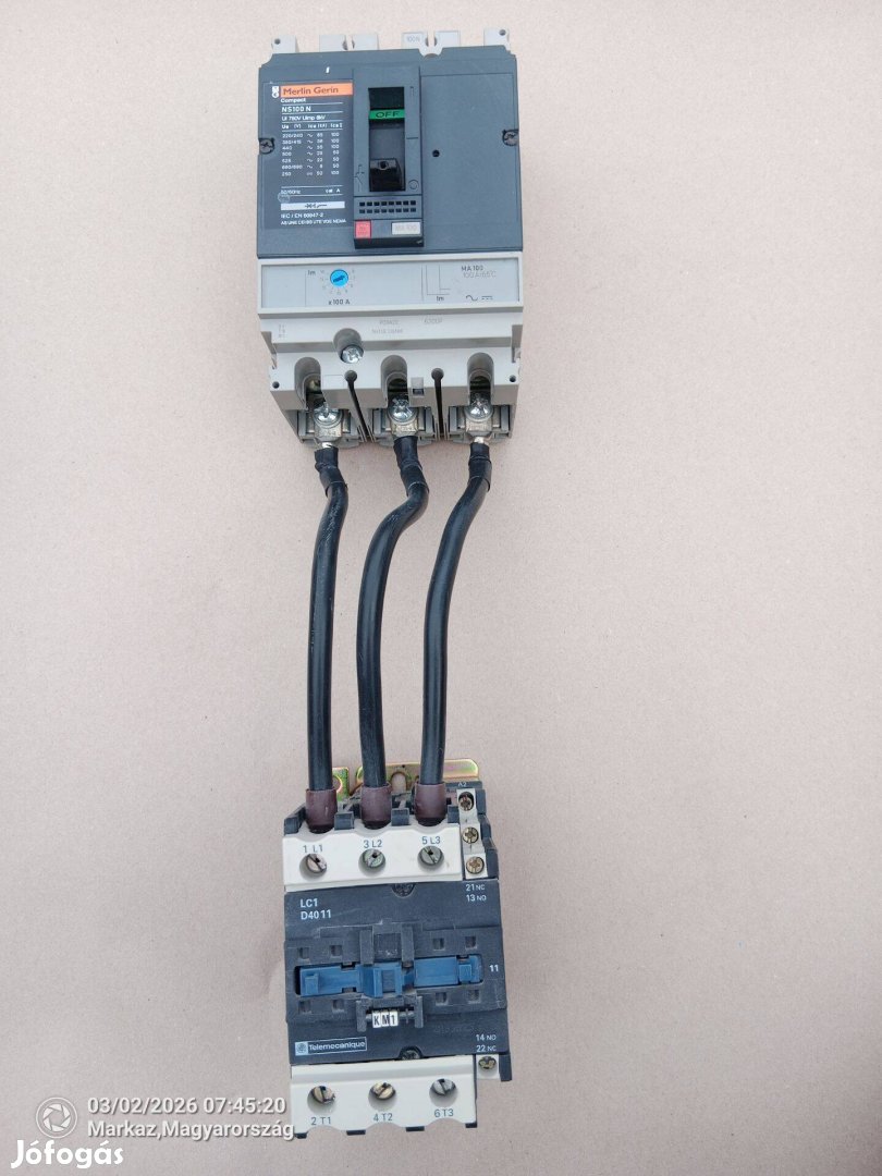 A képeken látható, bontott megszakító és mágneskapcsoló páros eladó. Frekvenciaváltót tápláltak. Adatok a képeken.