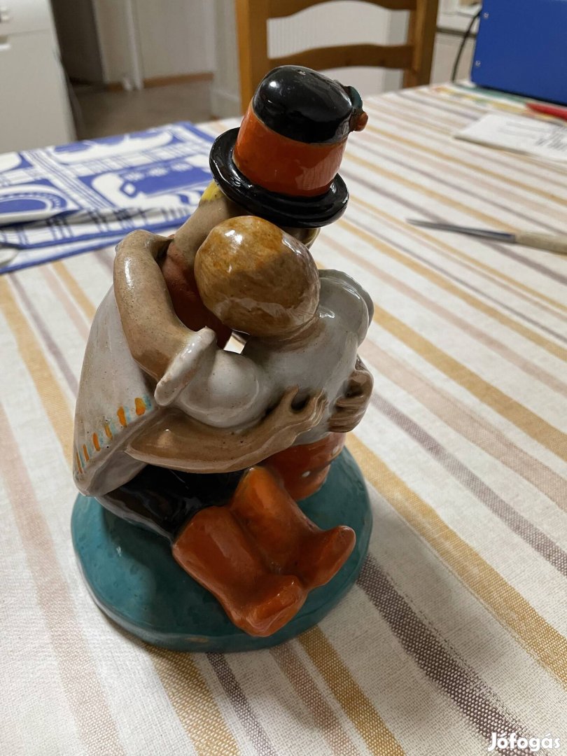 Eladó a képeken látható, kiváló állapotban lévő, eredeti Illés László keramikusművész által készített figurális szobor az 1930-as/40-es évekből. A szobor egy érzelmekkel teli, ölelkező parasztpárt ábrázol, a művészre jellemző élénk mázakkal és karakteres, népi-modern formavilággal. Az alján kézzel karcolt 'Illés' szignó található. Gyűjteménybe vagy nívós ajándéknak is tökéletes választás.