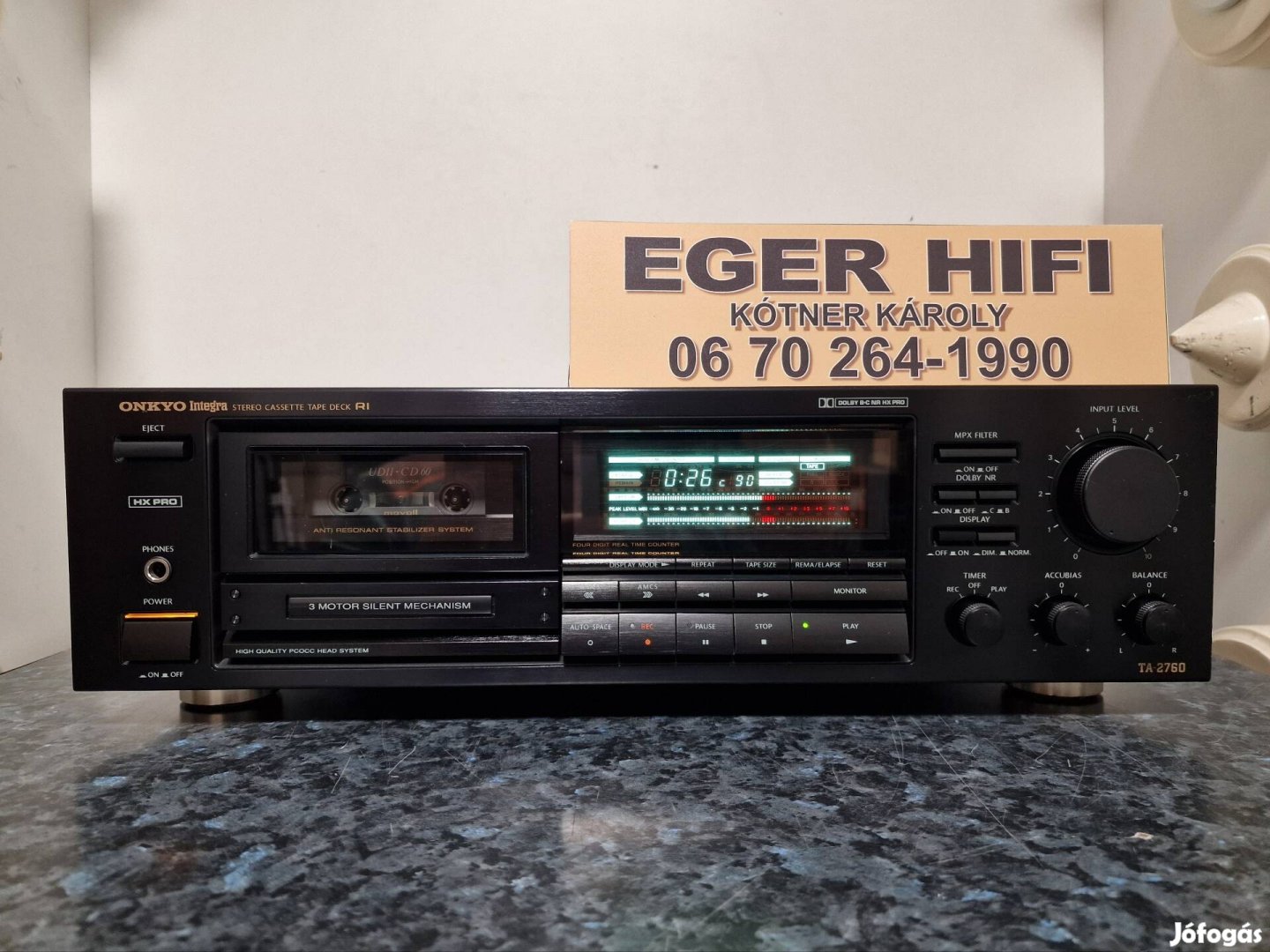 Onkyo Integra Ta-2760 típusú, Japán gyártású, 3 fejes, nagy kategóriás megnó deck vadonatúj szíjakkal, tökéletes működéssel, gyönyörű állapotban eladó Egerben. Kijelző fényes, kontrasztos. Digitális számláló. Fronton fejhallgató csatlakozó 6,3-as jack. Potméterek abszolút nem recsegnek. Bias fine potméter. Dolby b, c, mpx filter. Fejek kimondottan jó állapotúak. Görgők puhák. 3 motoros, csendes mechanikás készülék. Felvétele, lejátszása kimondottan jó. Rca csatlakozók. Ára személyes átvétel esetén fix 70 e ft. Szállítás esetén a szállítási költség minden esetben plusz tétel. 2000 ft körüli áron (utánvételi összegtől függ) laz ország bármely részébe el tudom küldeni. Kizárólag telefonon érdeklődjön! A telefon elérhető mindennap 8-20 óra között.