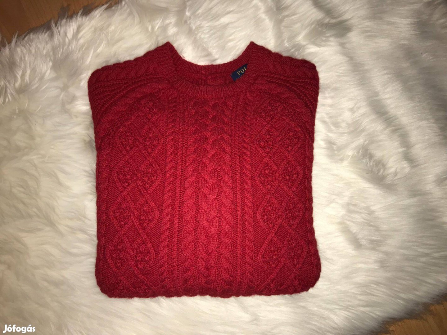 RL ír mintás női pulóver piros színben. Mérete: S