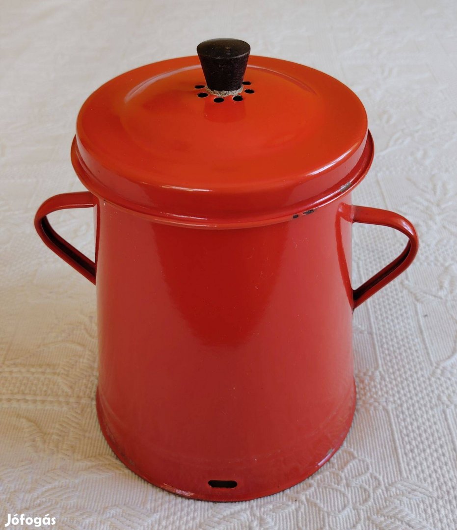 Régi Piros "Bonyhádi" 2 Literes Zománcos Zsíros Bödön / Véndő