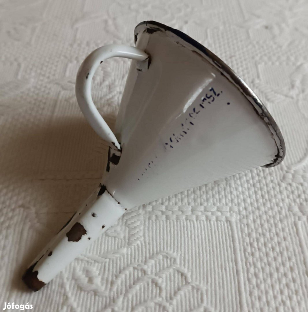 Régi "Jászkiséri" 10 cm Fehér Zománcos / Zománcozott Tölcsér