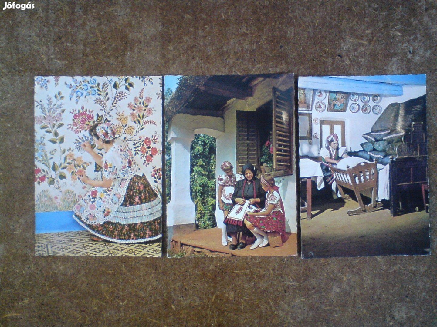 Népviselete képeslap - Kalocsa, Hollókő, Buzsák