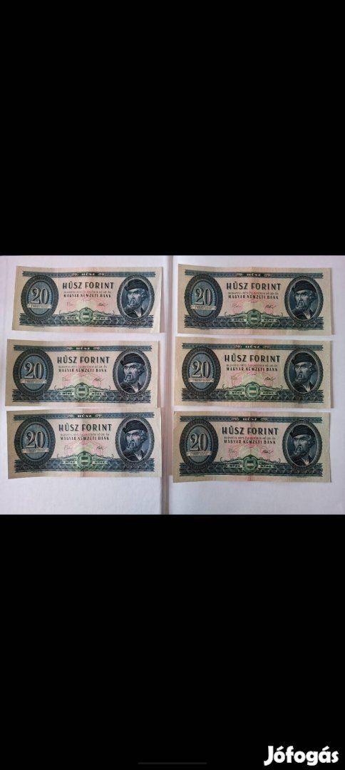 6db 20 forintos 1975 okt. 28-ai kiadás.