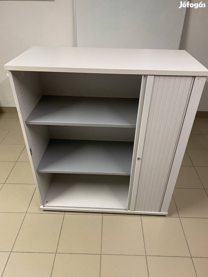 Méretek: 100cm széles*45cm mély*116cm magas. Oldalra elhúzható rolóval. Csak személyes átvétel lehetséges. Zár van benne, de kulcs nincs hozzá. Fém polcok, alacsony láb, strapabíró, erős szerkezet. A roló hibátlan működésű. 3 polcos.
