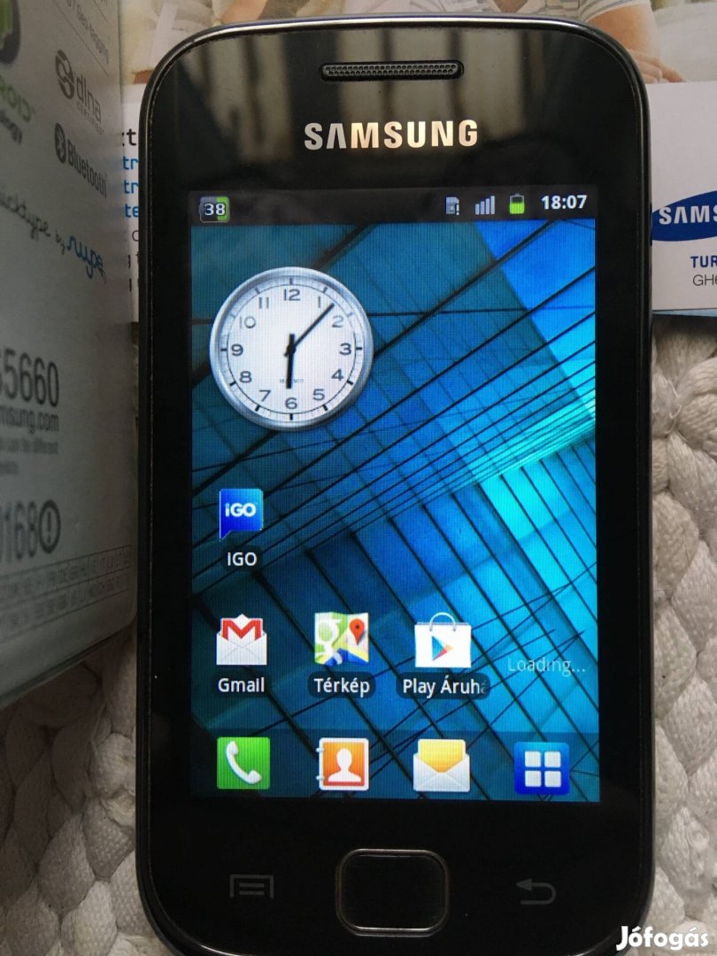 Samsung Galaxy Gio GT-S5660 gyűjtői darab, kiegészítőivel, ami a képeken látható.