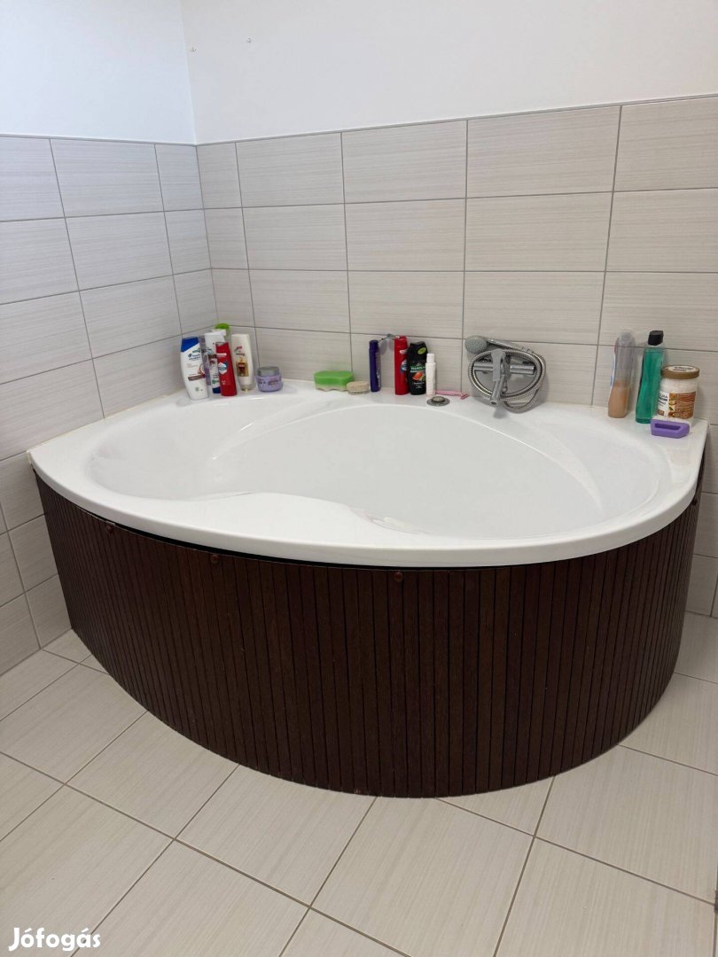 Eladó használt nem sérült, sarok fürdőkád fa Wenge előlappal.