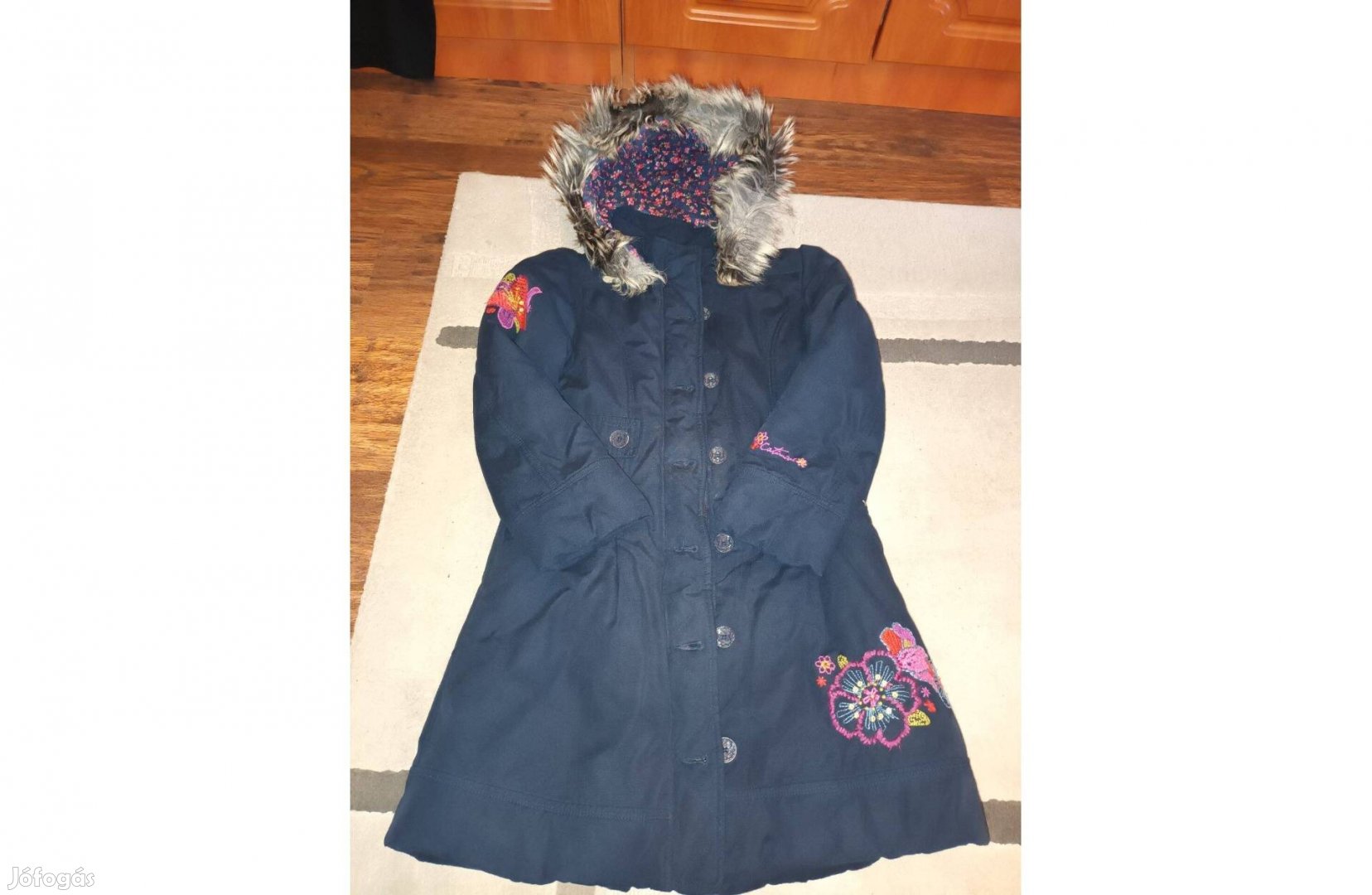 Sötétkék kislány újszerű hímzett francia kabát 8-10 év 7800 Ft