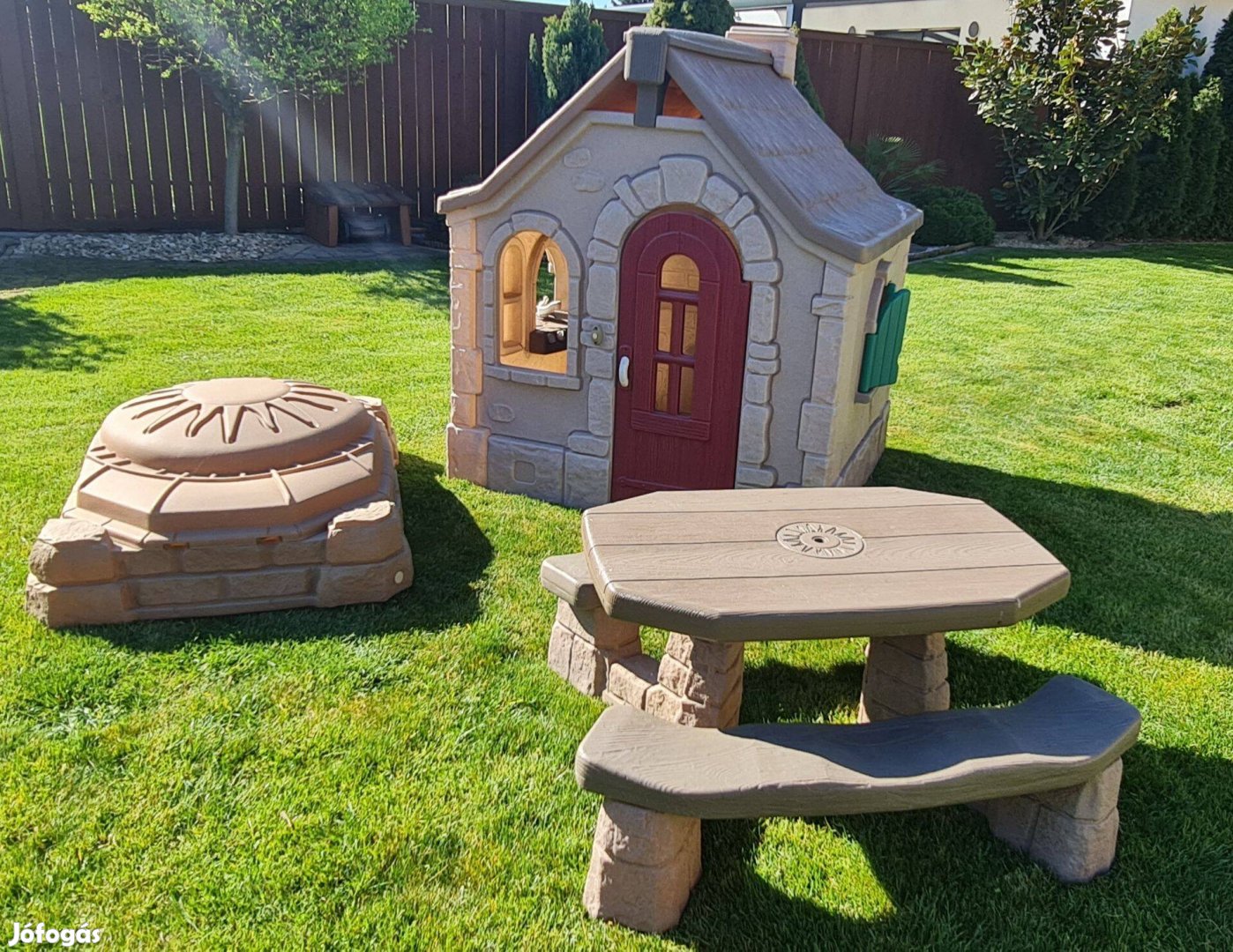 Egyben eladó Step2 játszóház, homokozó és piknik asztal.