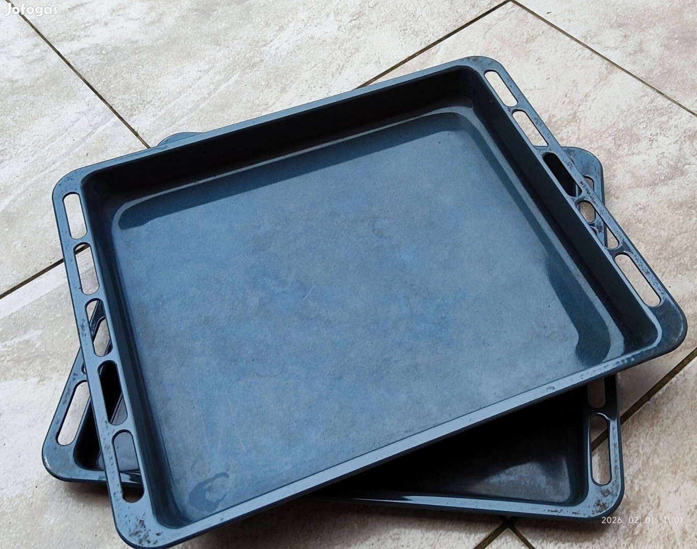 Eladó két darab, jó állapotban lévő, zománcozott sütő tepsi és egy rács.