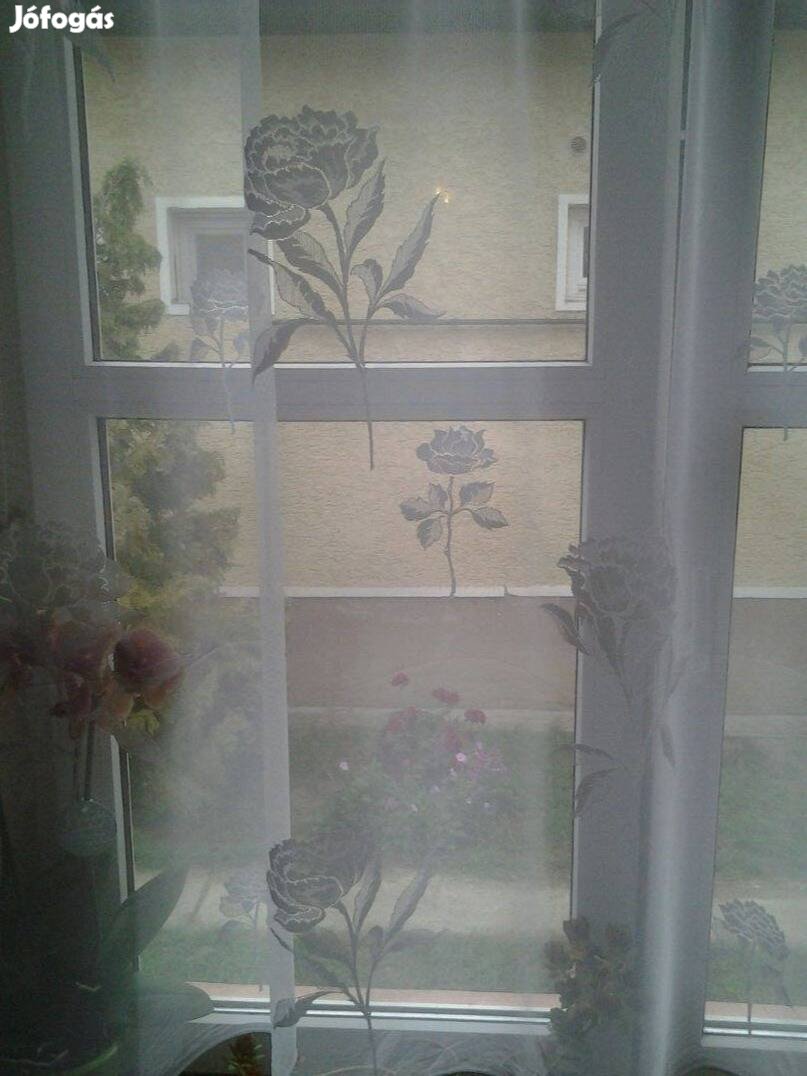 Új Fehér rózsás függöny behúzóval Ólomzsinórral (4,5m, x 180cm)
