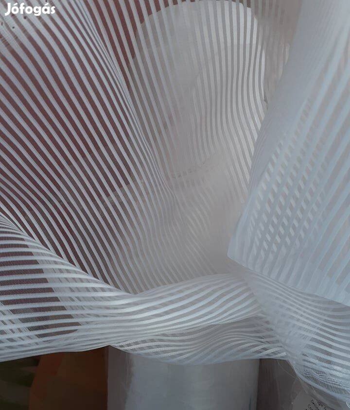 Eladó a képen látható hibátlan, kiváló minőségű, teljesen fényáteresztő, behúzó zsinórral ellátott dekoratív csík mintás kész organza függöny Alján ólomzsinórral