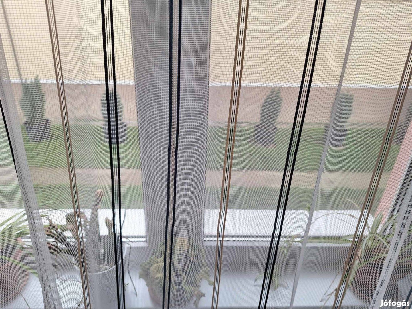 Új Kék-ekrü csíkos, hálós függöny (6,9m x 270 cm) Akció