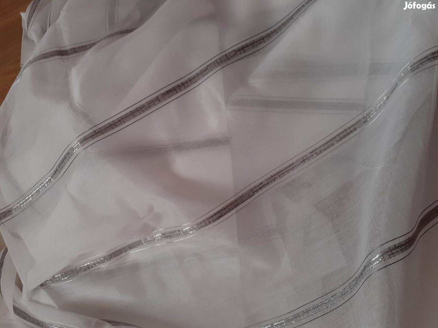 Fehér alap színű Új fényáteresztő sable függöny, dekoratív ezüstszürke, függőleges csíkokkal, elegáns csillogással.