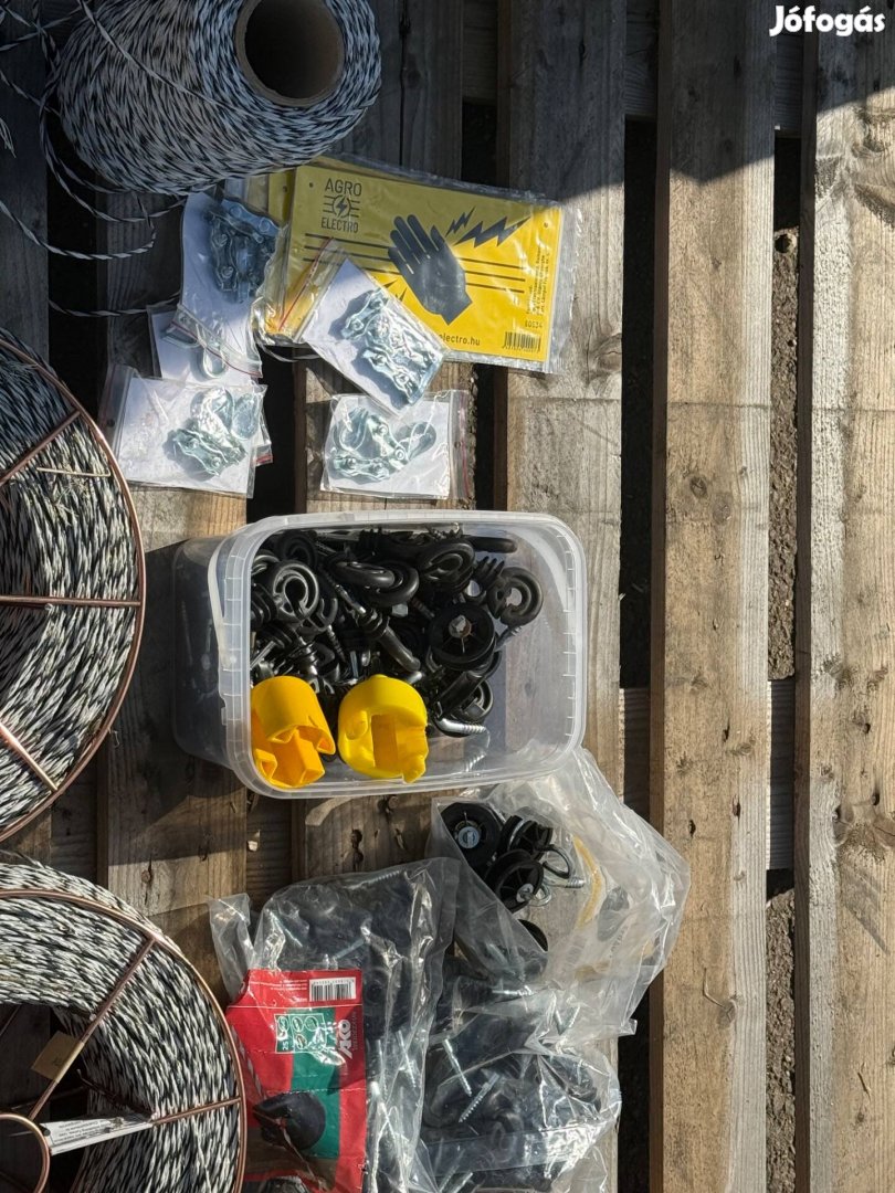 110 db akácfa oszlop tartozik hozzá, amelyek mindegyikén 2 db műanyag szigetelő van! Sok új alkatrész, kiegészítő jár hozzá, minden amit a képeken látsz (60 db új szigetelő, 5 pár kapuszigetelő, sarokelemek, toldók)