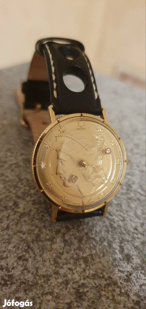 Vulcain vintage érme óra. 70-es évek. Kezihuzós szerkezet képek szerinti állapotban. Kettő darab gyémánt mutatja az időt. Nagyon ritka. Kn 34mm
