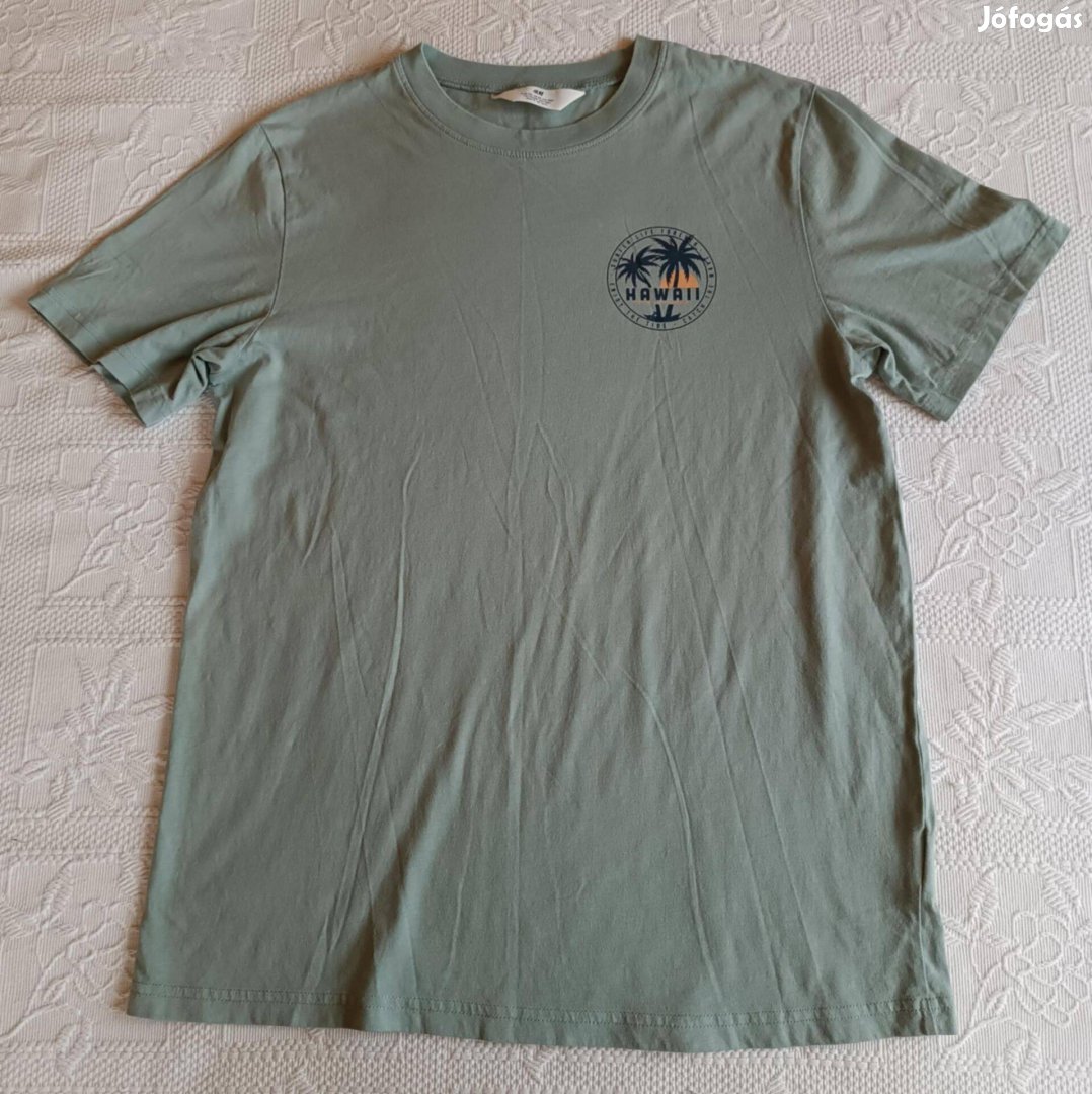 "H&M" Divatos Férfi Szürkészöld 100% Pamut Póló (M méret)