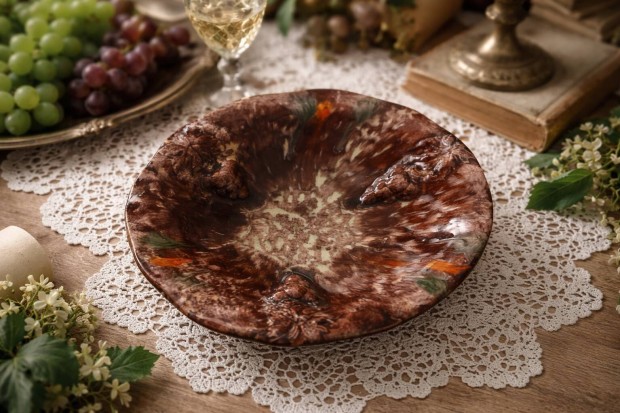 Német Majolika Kínáló- 28 cm Szőllőfürtös motívum