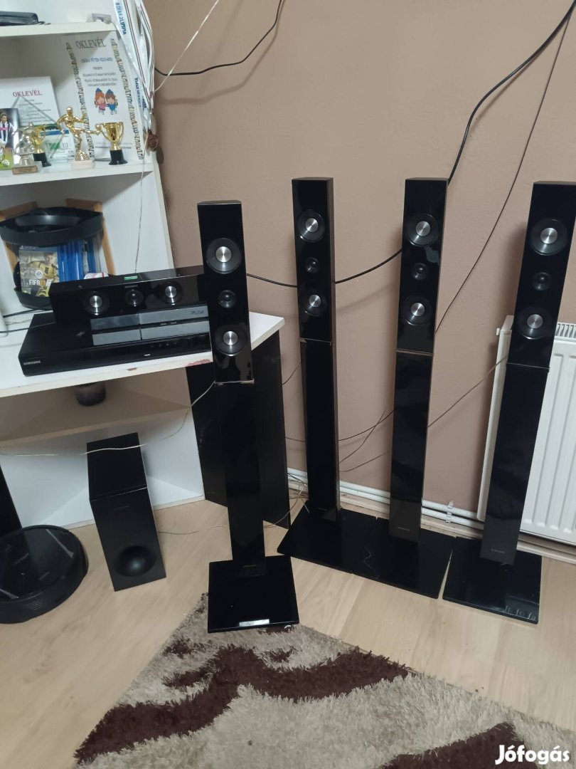 Eladó 5.1 es Samsung házimozi rendszer ami hibátlanul müködik távirányító is meg hozzá 4 álló hangfal egy center egy subb és a hazimozi erösitöből áll a szett.