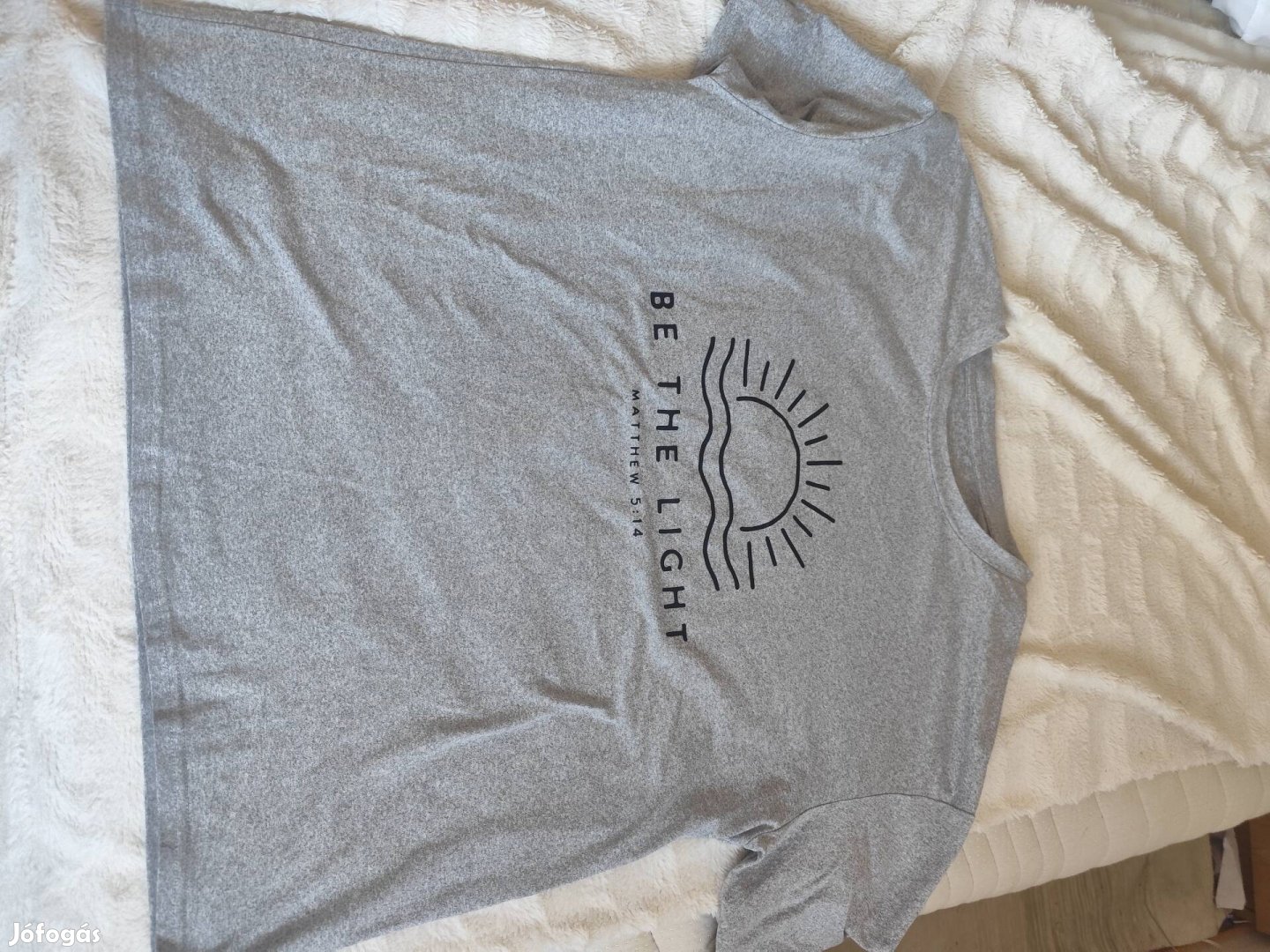 Feliratos szürke póló váll szélessége 50 centi de ejtett vállú hossza 62cm shine-roll rendelt darab anyaga poliészter elasztán kényelmes rugalmas viselet