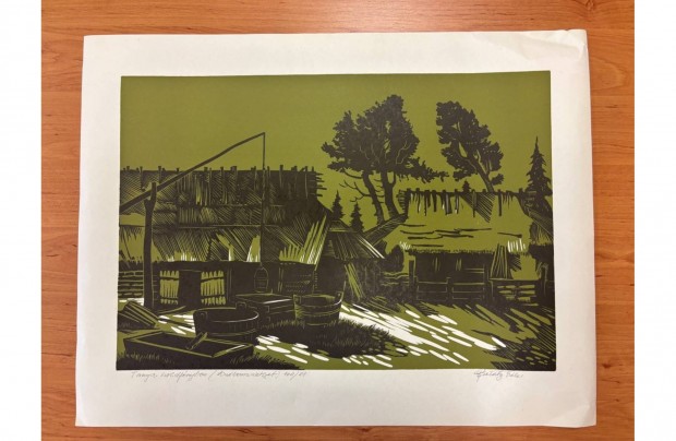 Pataky Béla: Tanya holdfényben linómetszet, képzőművészeti alkotás
