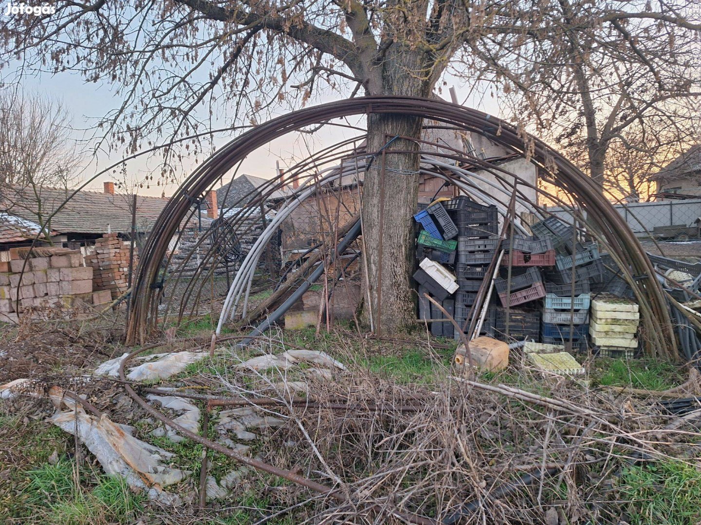22 db 5 m széles, colos csőből. Erre 8,5 m-es fólia kell , fel van szedve