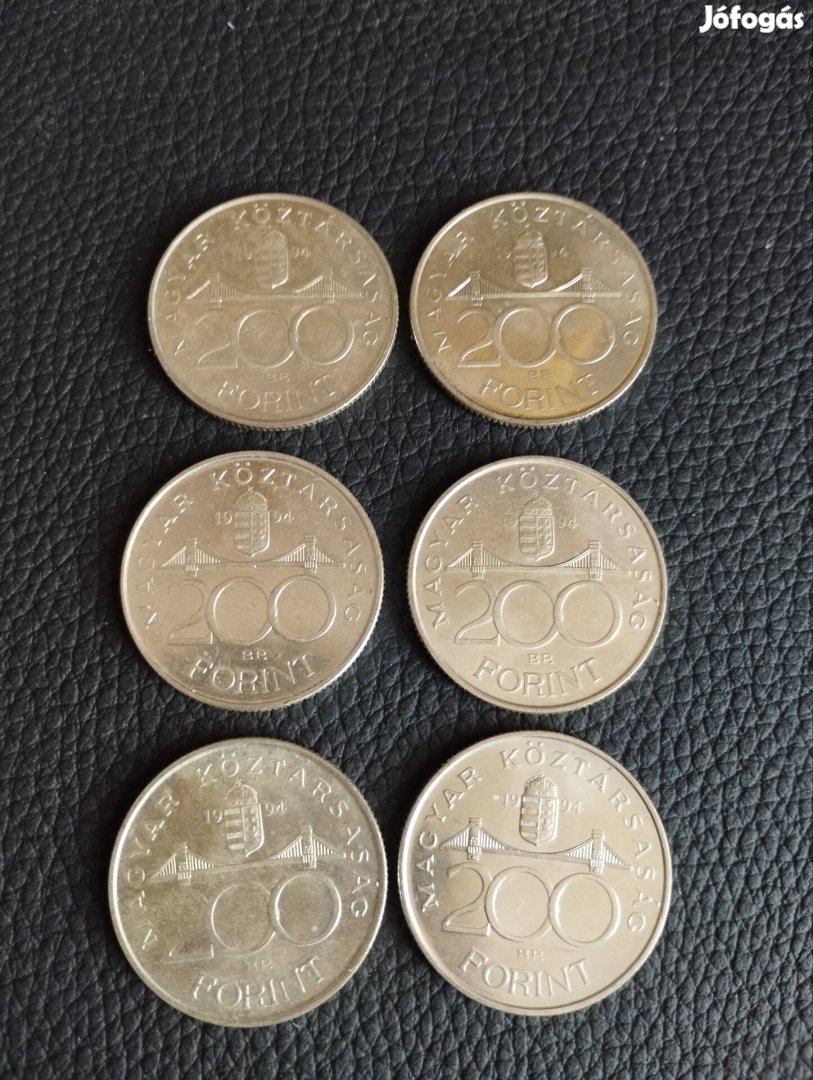 Eladó a képen látható,6db.ezüst ketszáz forintos penzerme!