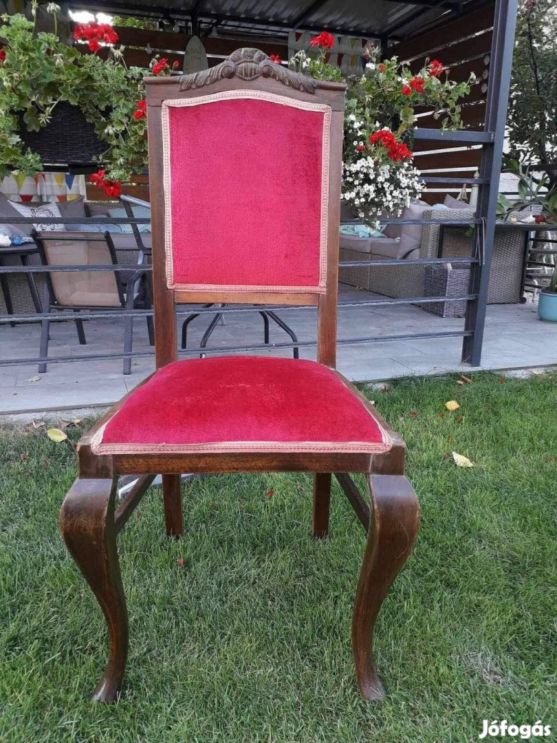 4 db antik, vörös kárpitozású, Biedermeier stílusú székek keresik új otthonukat. Egy székről hiányzik a kárpit . Személyes átvétel Jászberényben lehetséges .