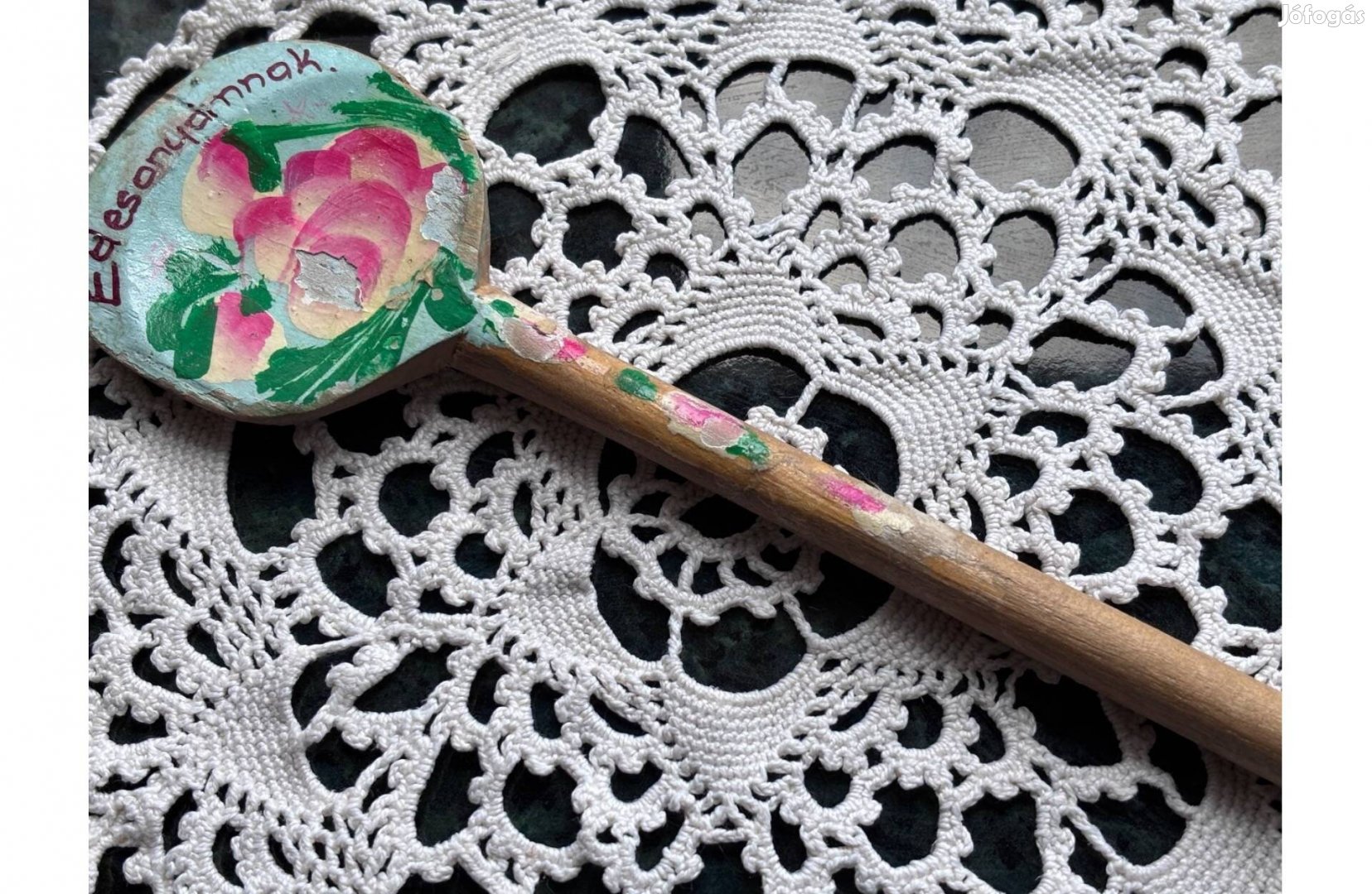 Kézzel festett anyák napi ajándék a múlt századból. Korának megfelelő patinás állapotban.