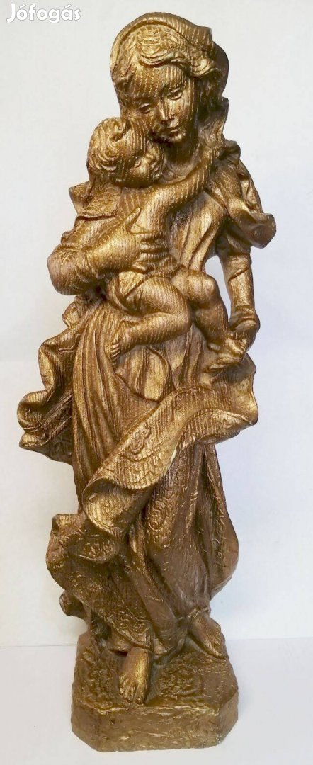 Arany Madonna a gyermekével. Rusztikus felületű zsírkőszobor