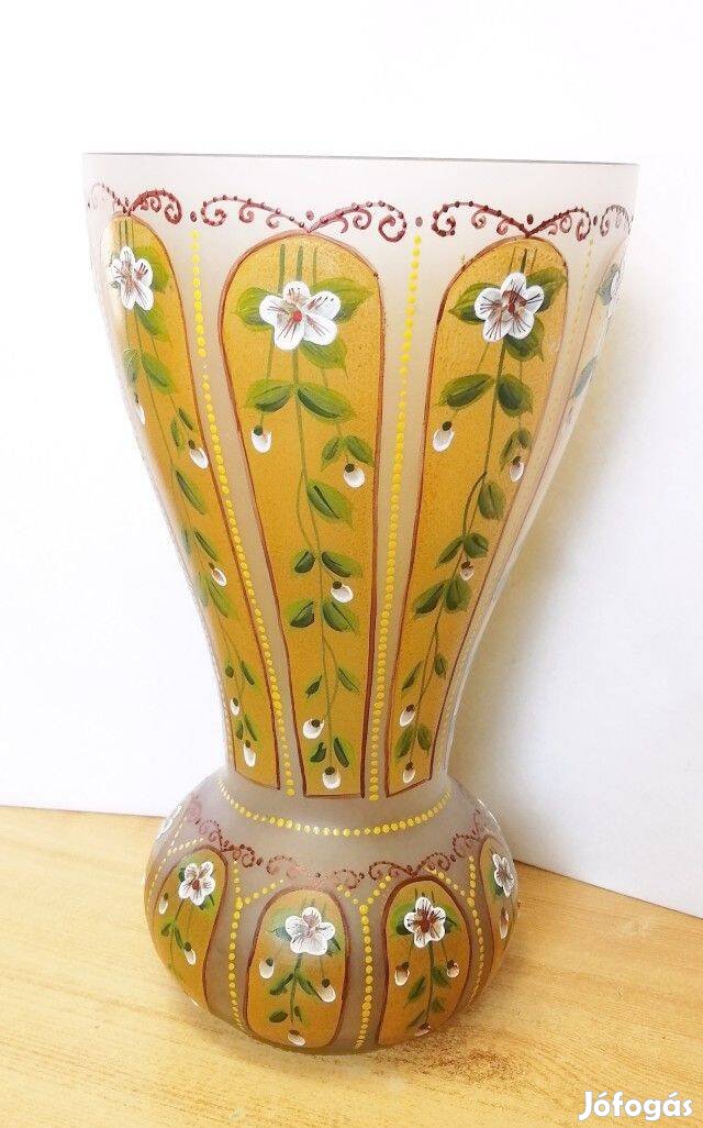 Bohemia váza különlegesség. Sávos virágos zománc festéssel