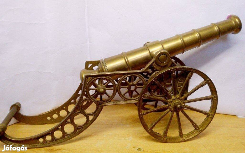 Bronz ágyúmodell asztaldísz, nagy méretű részletgazdag ábrázolás