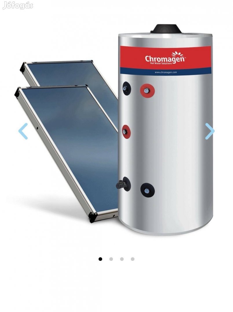 Eladó Chromagen típusú nagy felületű napkollektor vízszintes tárolójával.