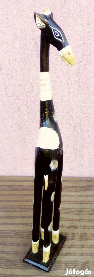 Minden porcikája a kézműves mester munkáját dicséri. Egy tömbből faragott festett mintázatú zsiráf, elfordított fejjel. Viaszolt felületű, a fa természetes erezetét, és struktúráját kihangsúlyozó kézműves alkotás. A képeken látható újszerű állapotban. Egyedi dekorációja lehet az otthonod megkülönböztetett helyszínének. Ajánlom gyűjteménybe, kiállítási célra, vagy a lakásod díszeként. Ajándékozási célból kiváló választás.
