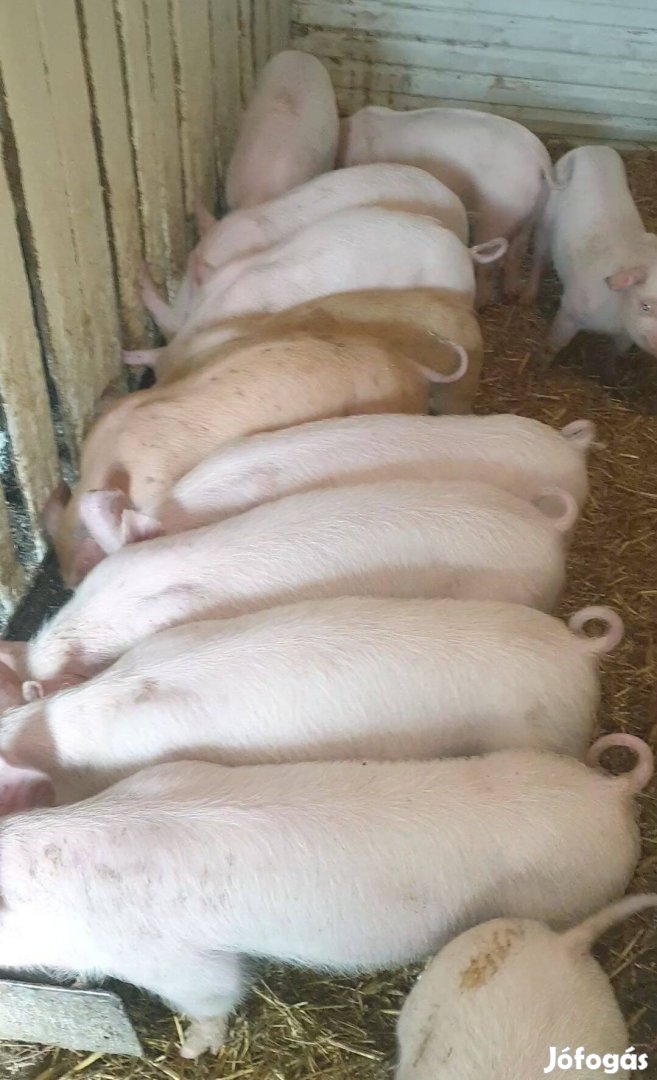 Gazdát cserél 12db szép malac, Életkoruk: 8,5 hetes, Fajta: Magyar nagyfehér és Durok, Súlyuk: 25kg,