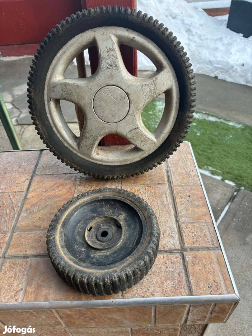 Eladó a képen látható önjárós Honda fűnyíróhoz való kerék. A nagy 6000 a kicsi 2500 Ft. Kérem telefonon érdeklődjenek. Köszönöm.