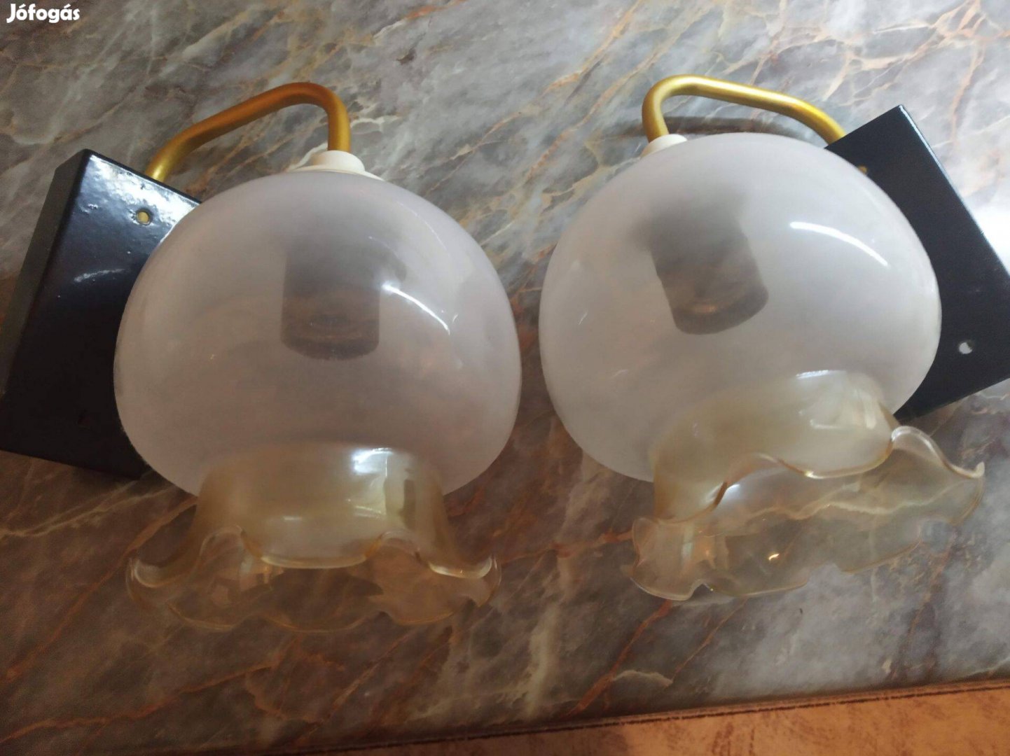 Eladó a képen látható 2 db normál foglalatos fali lámpa. A gömb legnagyobb átmérője 15 cm, s hullámos díszítéssel ellátott. Csak egyben eladó.