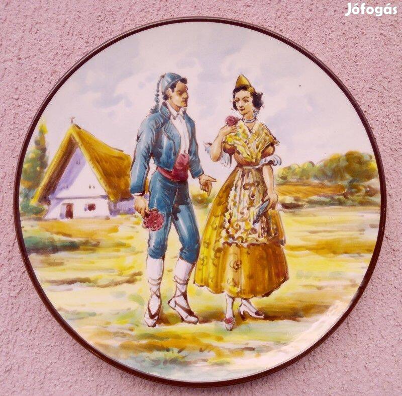 Falitányér katalán romantikus jelenettel, kézműves igényesen festett