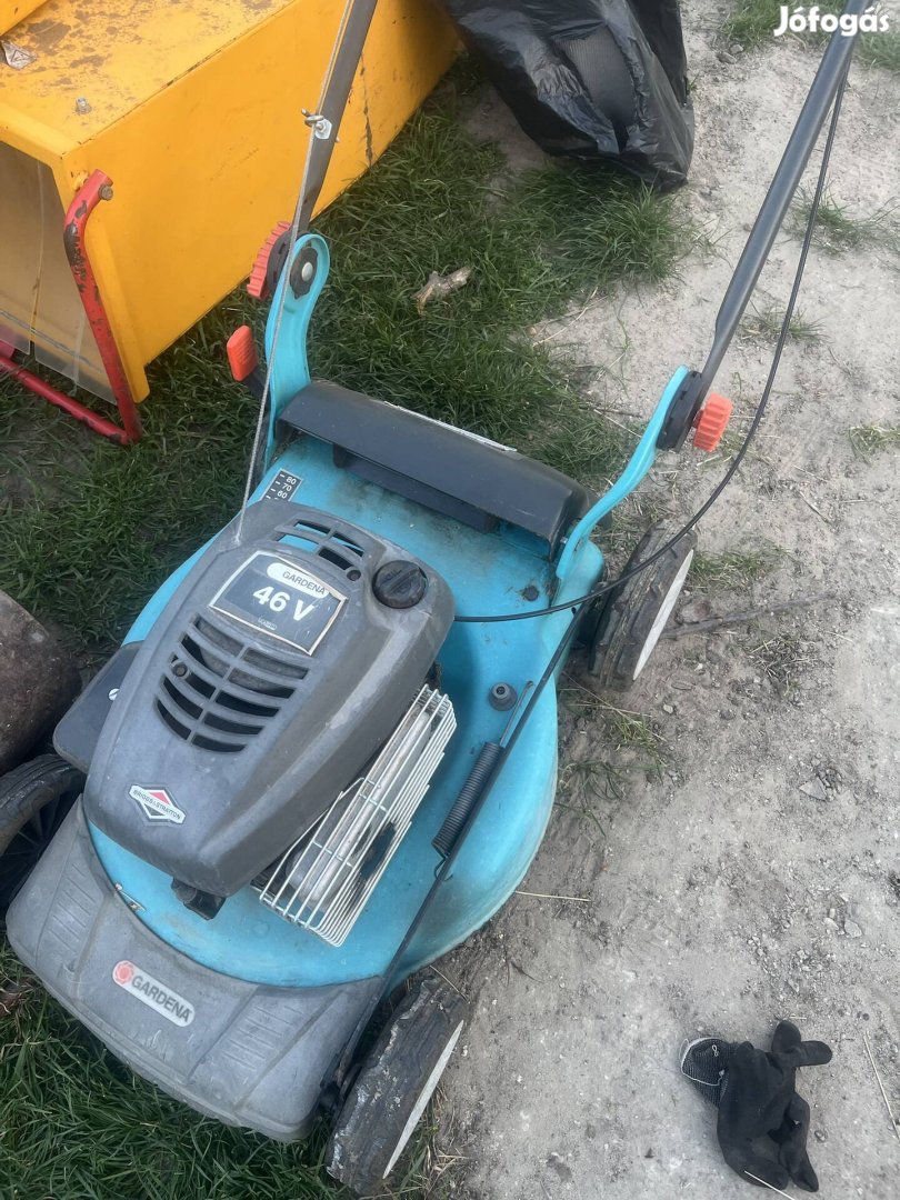 Eladó a képeken látható Gardena Briggs motoros, fémvázas, slag gyorscsatlakozós(tisztító) benzines fűnyitó.