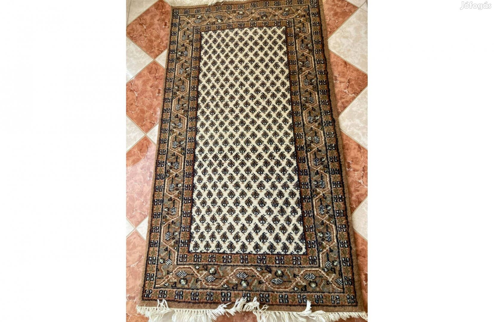 100% gyapjú, vastag, kézi csomózású. Tiszta, szagtalan. Mérete 166 cm x 92 cm.