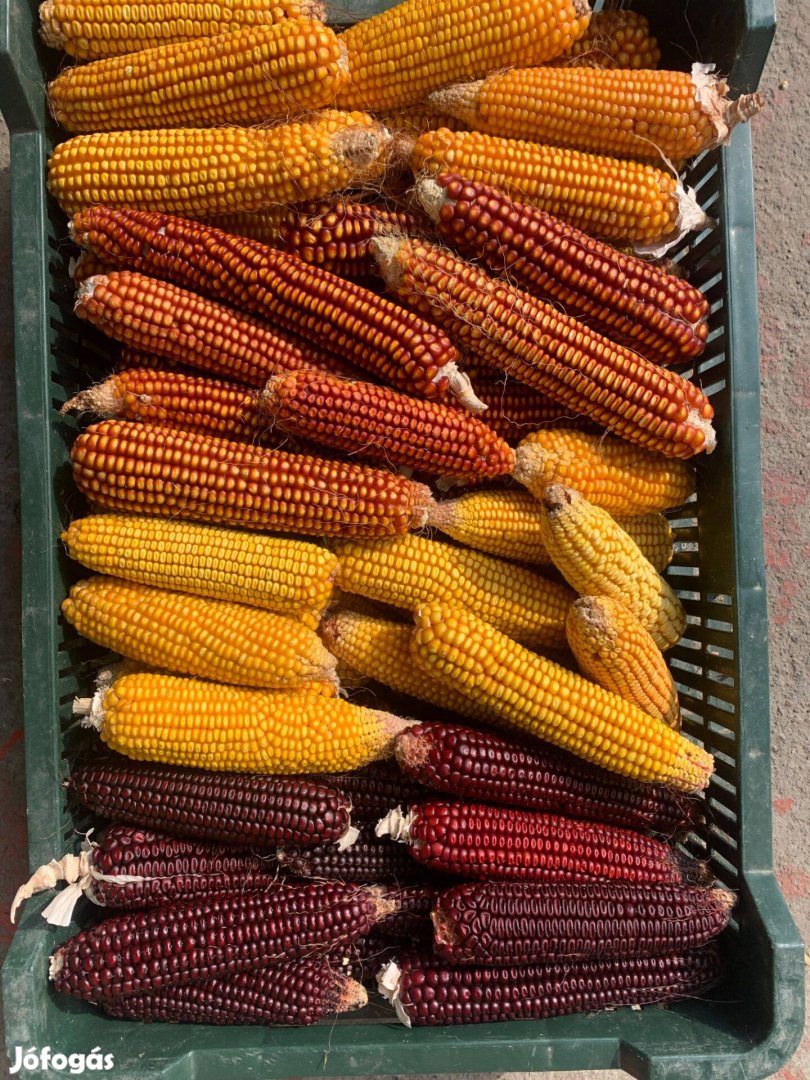 Ellenőrzött bio termesztésből származó, szabad elvirágzású (nem hibrid) kukoricafajták vetőmagjai eladók. A képen látható négy színváltozatban, külön elérhetők. Közepes érésidő (FAO 360-390), robusztus növényméret és kiemelkedő beltartalom jellemzi. Ár: 2 200 Ft/kg.