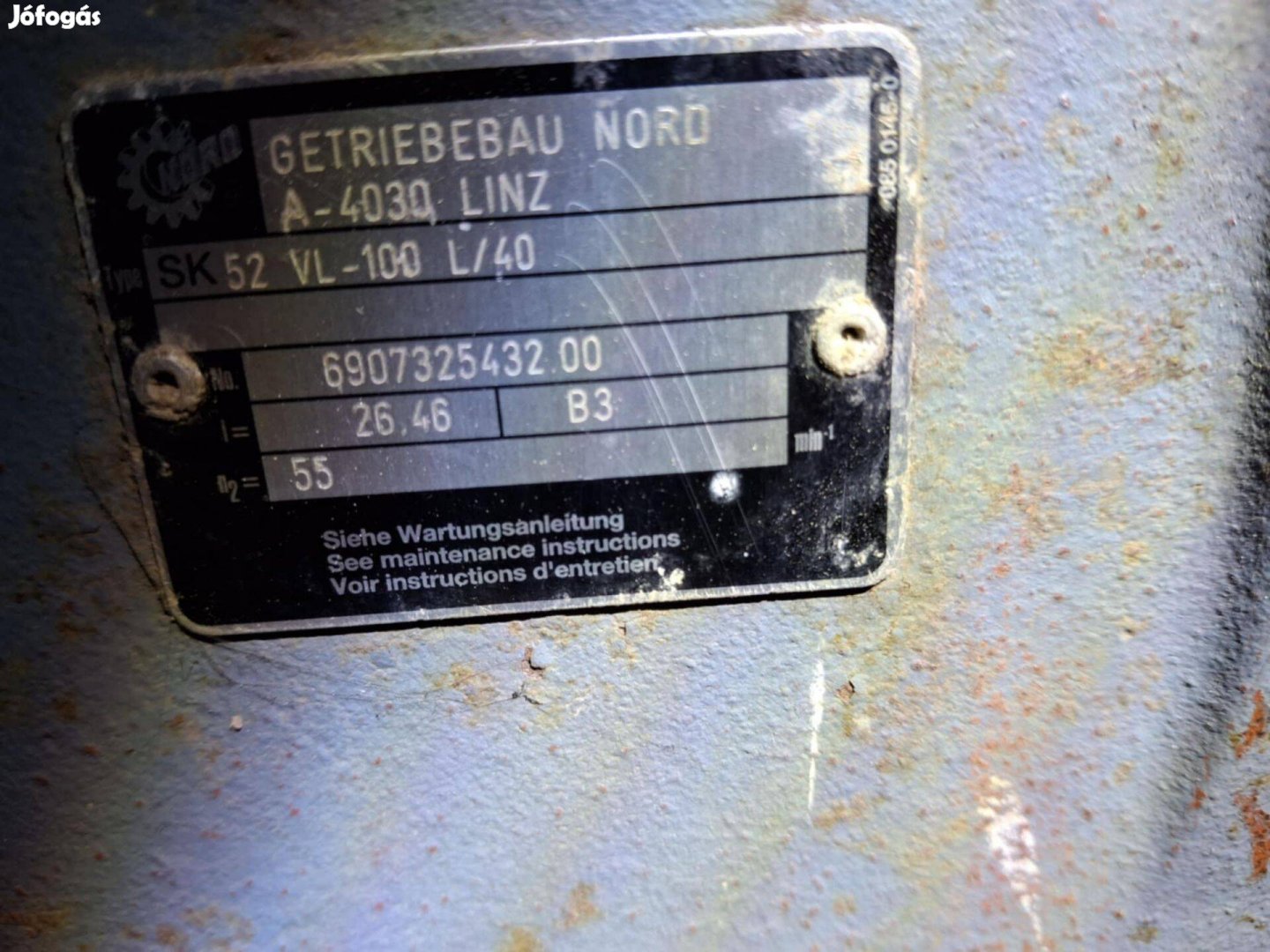 Eladó új 3 kW-os, 60 fordulat/perc, új Nord hajtóműves villanymotor.
