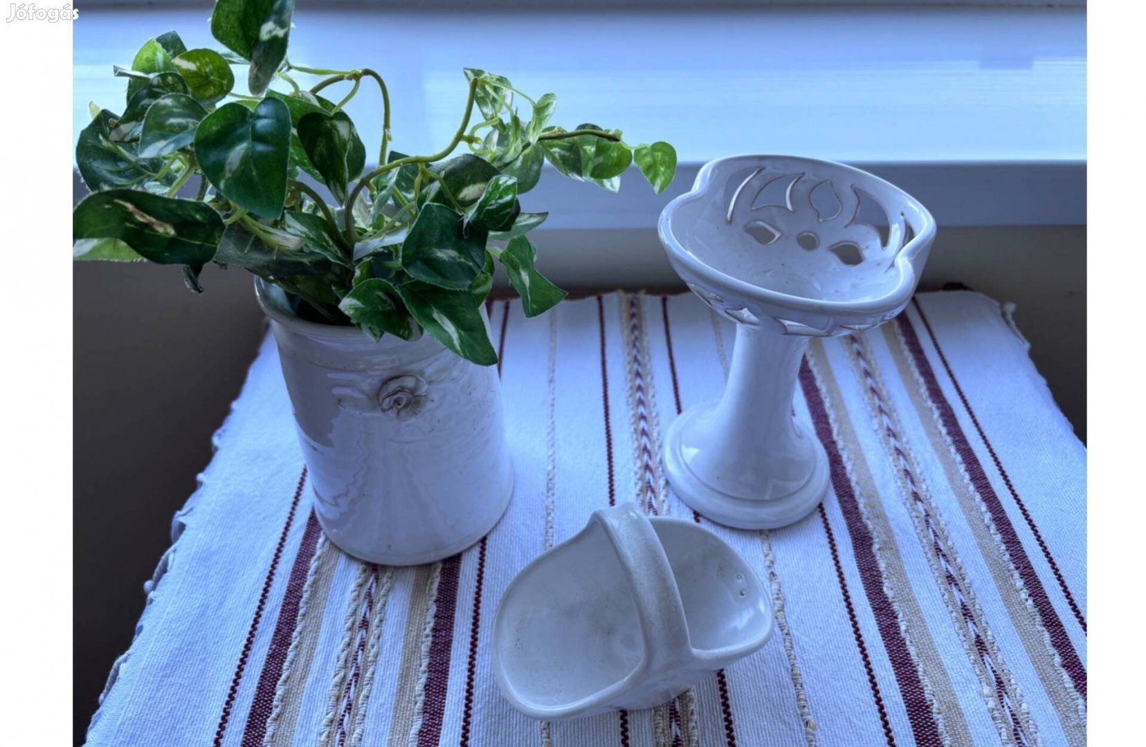 Hófehér mázas kerámia szett, anyáknapi ajándék, tavaszi dekoráció