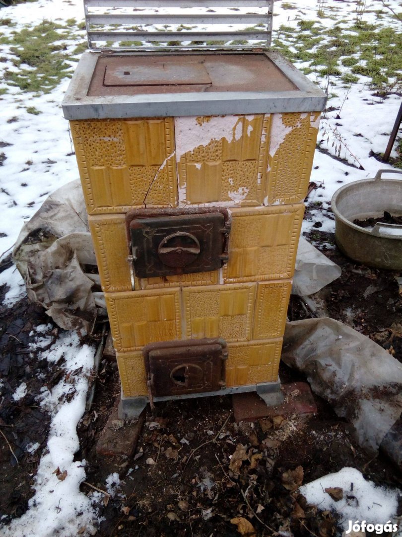 Hordozható cserépkályha eladó. Néhány csempe cserére szorul. Mérete: 43x54x106 cm